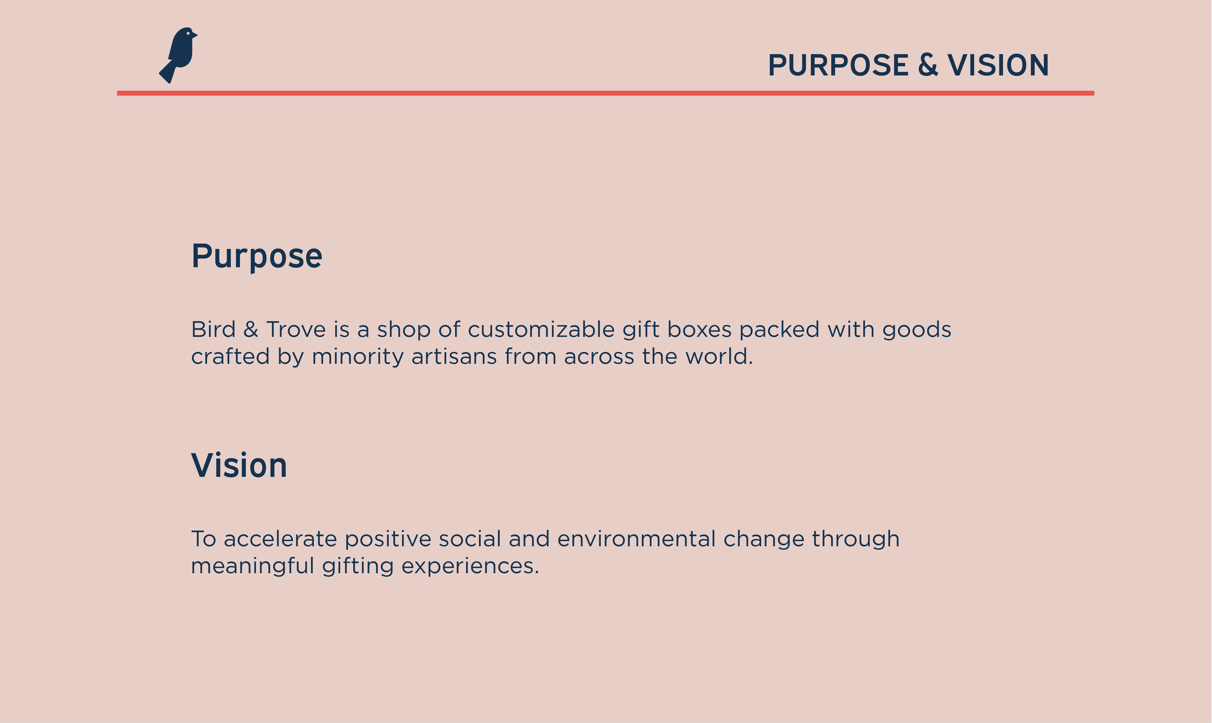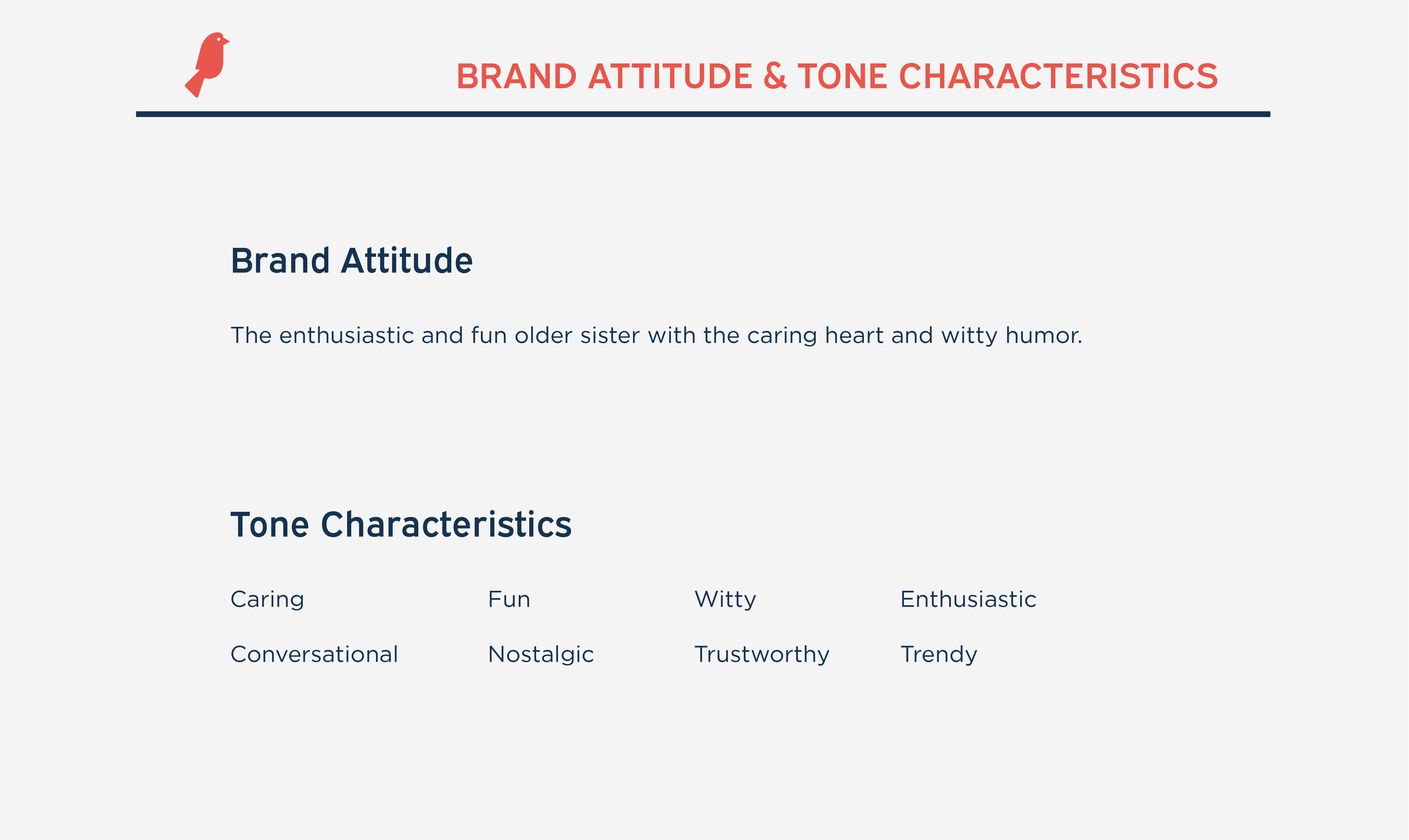 EmilyRae led the internal naming exploration process, developing a custom curriculum used within the agency to guide research and strategy. She also developed the brand tagline and shared key research insights with the client as part of Bird & Trove’s brand development.